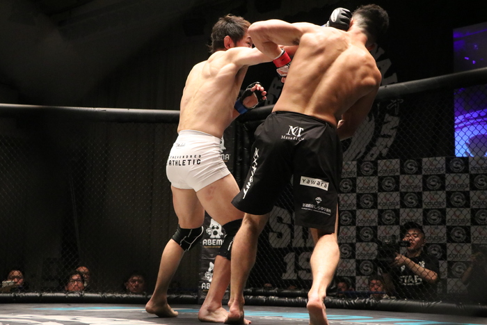 オーディンの右ミドルを掴んだ宇野はシングルレッグで倒しにいくも、オーディンは崩れず。オーディンの左ジャブに宇野もワンツーの右を返し。組むと崩せない宇野はシッティングガードのままホーン。