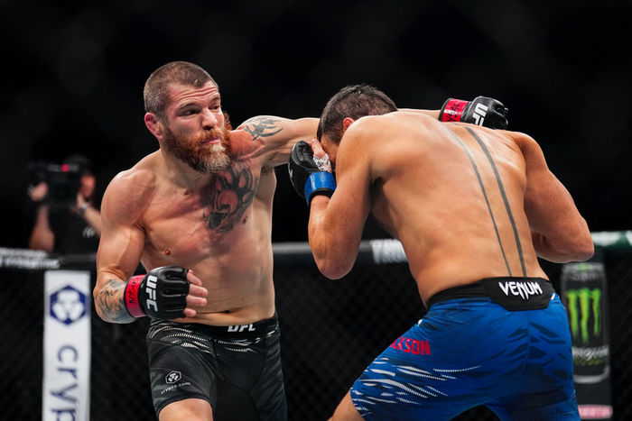ジャクソンはフェザー級でUFCデビューから6戦で5勝1敗(敗れた相手は現王者イリア・トプリア)だったが、初のランカー挑戦となったダン・イゲ戦からの4試合は1勝3敗。今回からライト級に上げる。フェザー級時代は80kgくらいから15kgほどの減量をしてきたが、減量によるダメージから逃れるため、今後はライト級で戦うとのこと。レスリングがバックボーンで、23勝中15の一本勝ちがある(決まり手はRNC、肩固め、ギロチン)。36歳。
