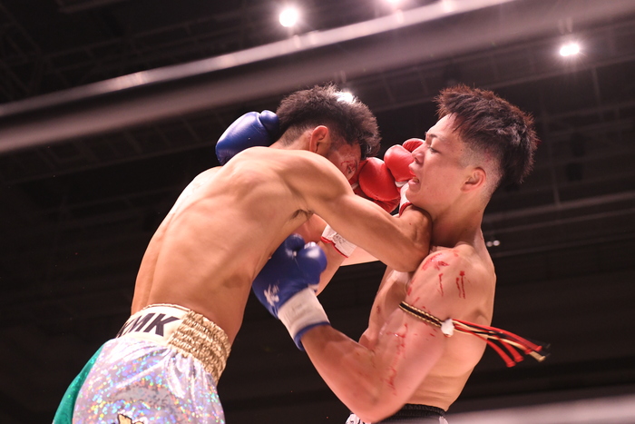 2Rも両者手数を出して打ち合う。パンチを回転させる小河に光弥は打ち合いながらヒザも出すが、右目上から流血してドクターチェックに。ここでストップがかかり、デビュー戦の小河のTKO勝ちとなった。