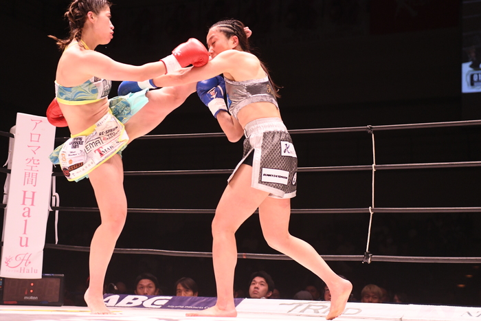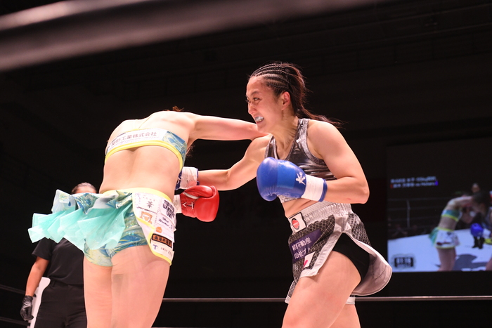 1R、右ローを蹴っていくHotaruに鈴木は前に出て左右フック。鈴木はジャブを伸ばして右ストレート、右ロー。左ミドルから右ストレートと前へ出ていく。Hotaruは左ミドルを蹴り、クリンチからの離れ際に右ハイを放つ。終盤から手数を増やすHotaruだが、鈴木はもらいっぱなしにならず必ず攻撃を返す。