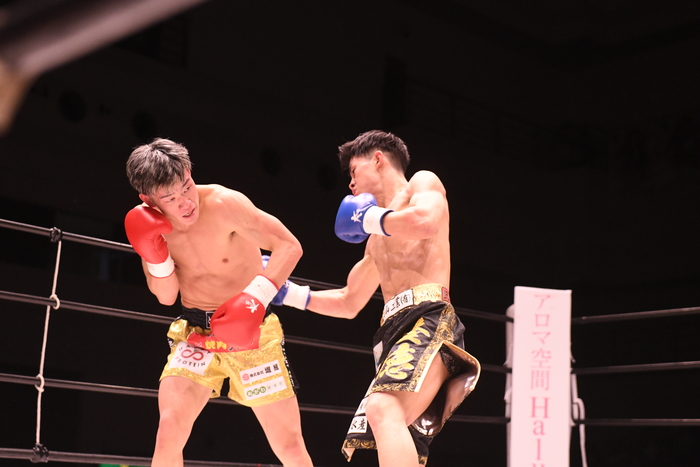 3Rも豊田は左ロー、左ミドル、左ハイと蹴り分ける。中島はワンツー、右ボディとパンチで前へ出る。パンチで勝負をかける中島は前蹴りも混ぜ、このラウンドは攻めの姿勢を見せるが豊田は下がらない。中島の左カーフにバランスを崩す豊田。ジャブからワンツー連打で前へ出る中島だが決定打は奪えない。左を蹴り続ける豊田。