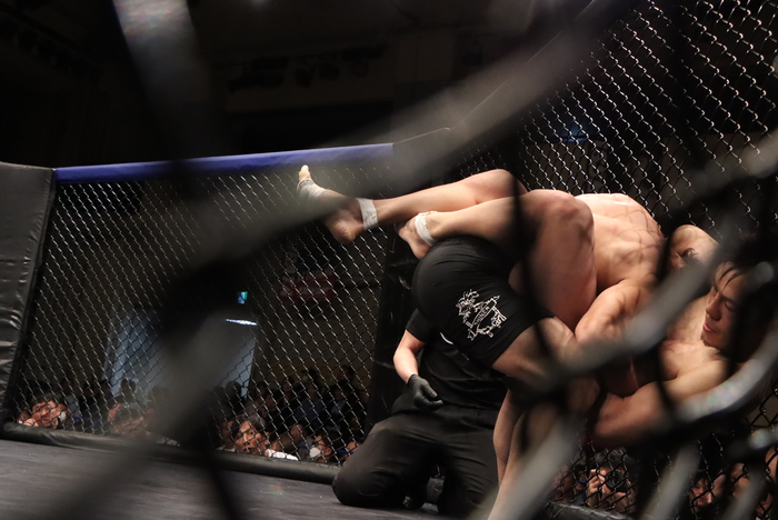 荻窪は細かいワンツーの右を当てて金網に詰めてテイクダウン。金網背に立つ北野の右腕にキムラ狙いで回そうとするが残した北野が上から腕を抜き、ゴング。