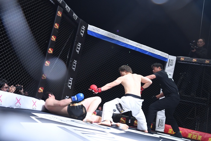 立ち上がった小宮山だが足がふらつき、すぐにレフェリーがストップ。大野の見事はKO勝ちとなった。