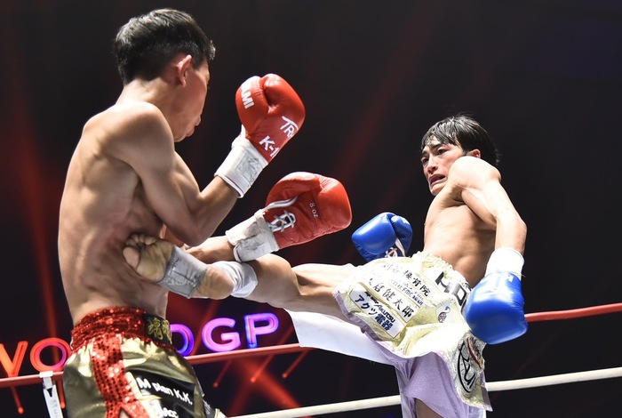 3R、大久保が左インローから左ミドル、左ハイまで蹴る。ワンツーから左ミドル、さらにバックハンドブローと積極的に攻める大久保。璃明武は近距離で左フックを打つが大久保がコカす。大久保がワンツーからヒザ、璃明武はクリンチで注意を受ける。ワンツーから右ミドルで前へ出た大久保は打ち合いを挑み、璃明武もロープを背負って打ち合う。ここは互角。離れると大久保はワンツーを打って当てるとそのまま組み付き、璃明武に反撃を許さない。