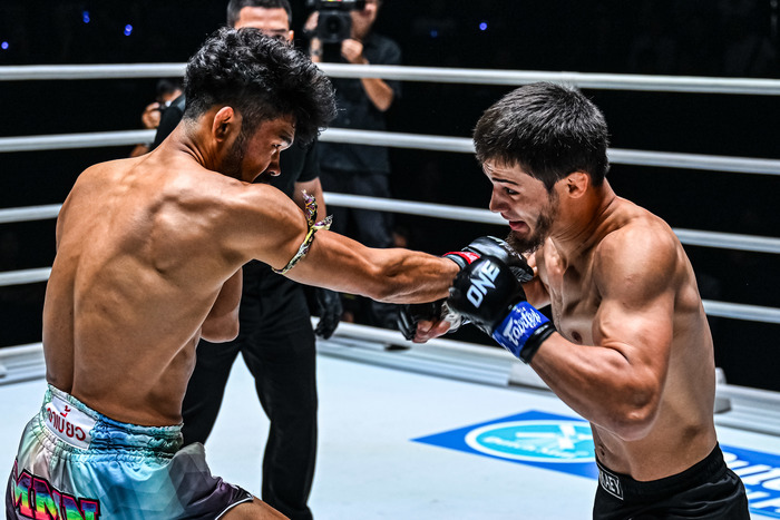 1R、サウスポーのシブムンにダヤカエフはじりじりと迫って右ボディストレート、右ストレート。シブムンが左ミドルを蹴ったところでダヤカエフが右ボディストレートから左フックを返したところでこれがモロにヒット。