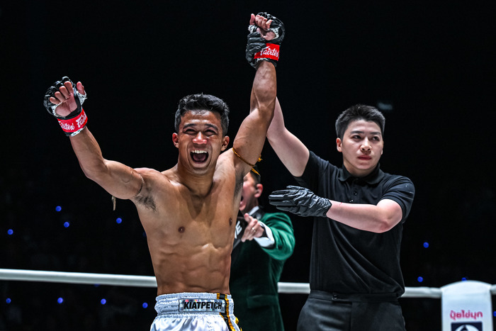 1R終了間際、組んでのヒジの打ち合いでラックの右ヒジが決まりコーコーが大流血。インターバル中にドクターチェックが行われ、ここでストップがかかった。ラックは35万バーツのボーナスも手にした。