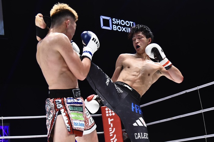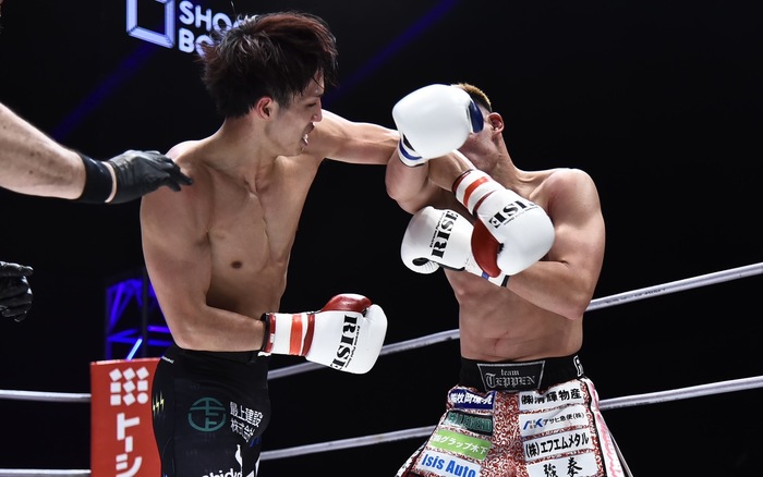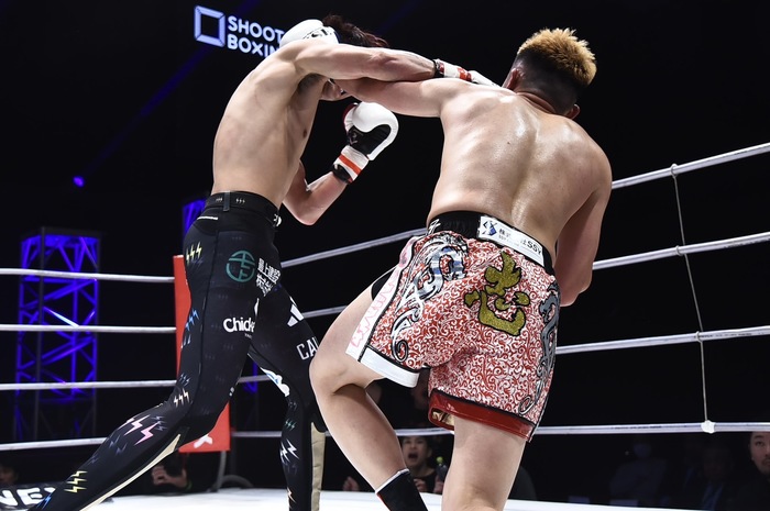 GUMPは挽回しようと前へ出るが、笠原が蹴りで迎え撃ち、右のジャブのカウンターでGUMPはグラつく。笠原は組むとヒザ。ガムシャラにパンチを出すGUMPへ笠原が左ストレート、右フック。さらにワンツー、GUMPが前へ出てくると回り込む。
