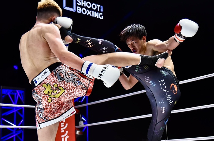 1R、右へ回り込む笠原が右フックから左ミドル、左ストレート。GUMPは右ローを返していく。正面に立つとGUMPがワンツーで前へ出る。下がる笠原だが前へ出て飛びヒザ。GUMPが右ストレートを放つと笠原は左ストレートを返す。左右のパンチを出して前へ突進するGUMPへ笠原は至近距離で左の飛びヒザを突き上げる。