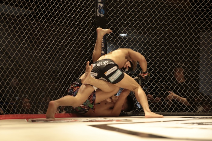 1R、先に中央に走る花園をさばく田口はダブルレッグテイクダウン。ニーインからパウンドも足を戻す花園は蹴り上げ。中腰からパウンドの田口に、花園は50/50から足関節狙い。組ませず背中を着けさせた田口は、ハーフから細かいパウンド。肩固めも狙う。