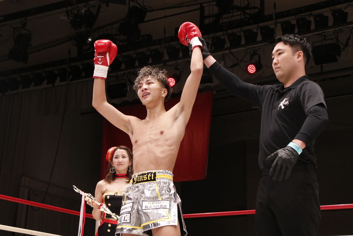 1R、両者右カーフを蹴り合い、吉川が右ストレートから左フックを返し、これが左フックを打とうとした菊地にカウンターでヒット。一発KO勝ちとなった。