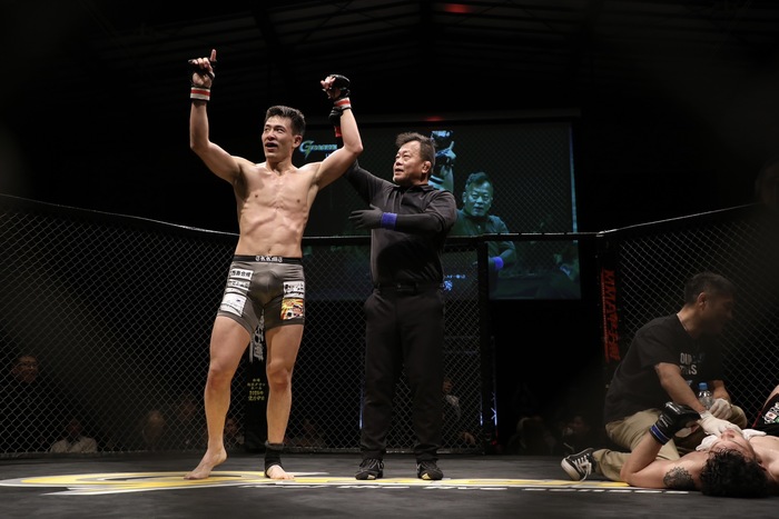 左腕を頭に巻いて下になった宇土にトップの青木がヴォンフルーチョークを極めて、宇土を失神させた。青木は2試合連続、ヴォンフルーチョークでの一本勝ち。