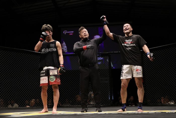 延長判定は3-0で左カーフから右、さらにテイクダウン&パウンドを続けた八木が勝利した。
