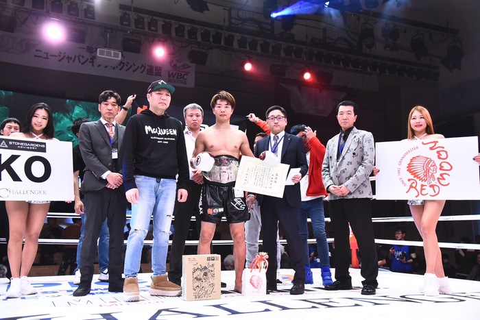 大田はマイクを持つと「防衛戦だったんですが、今日で返上してこれからは世界を狙いに本格的に行きたいと思います。世界で戦っていくために本当に凄い練習をしています。そこで今たくさん世界で戦っている日本人がいるんですけれど、僕もその戦う人になりたいと思っているのでこれからも頑張ります。6月にNJKFで僕がずっと欲しかったベルト、WBC世界タイトルマッチが決まりそうなので、また後楽園ホールに来てください」と、これからは世界を相手に戦っていきたいと宣言した。