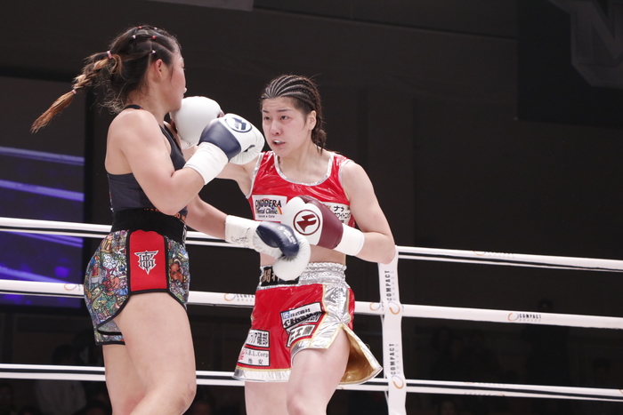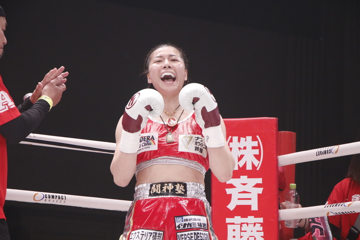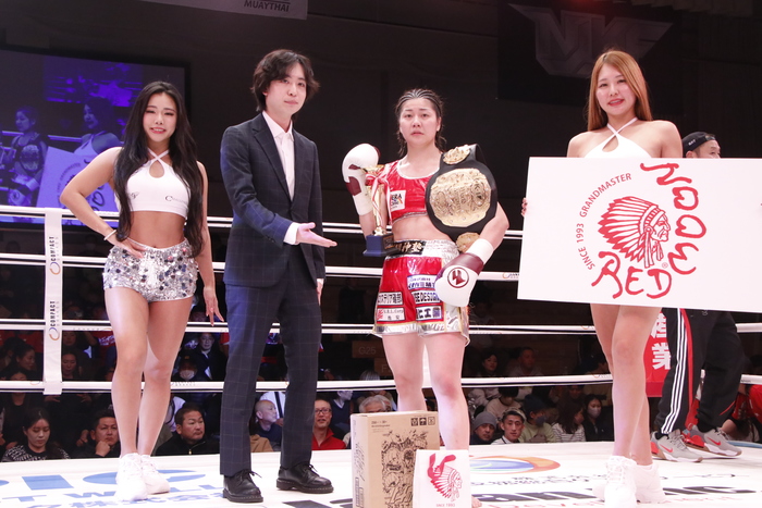 判定3-0でSAHOが勝利。「またこうやって呼んでいただいてもらっていい試合して恩返ししようと思っとったですけど、試合内容にこだわって今日も練習してきてやったけれど、自分が納得いかないので。ほんまに王者として見せてナンボやと思っているので、こんなもので満足してたら伸びないし強くなれないので、次の試合はもっと強くなって帰って来るのでまた応援よろしくお願いします」と語った。