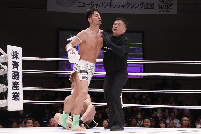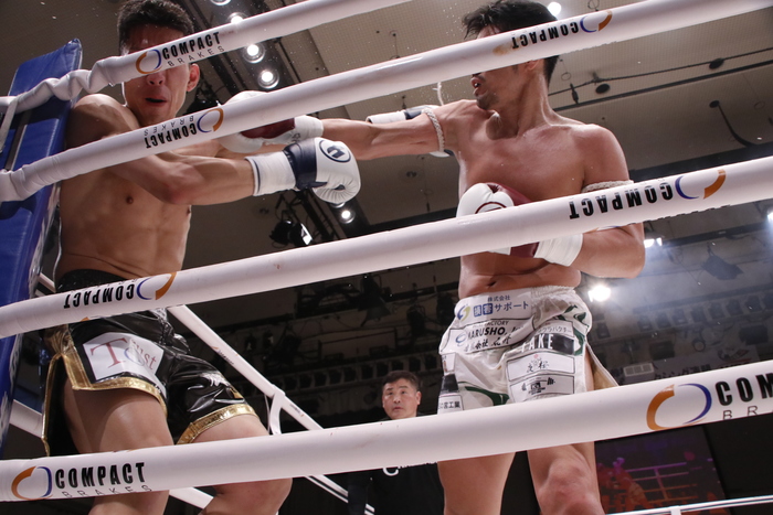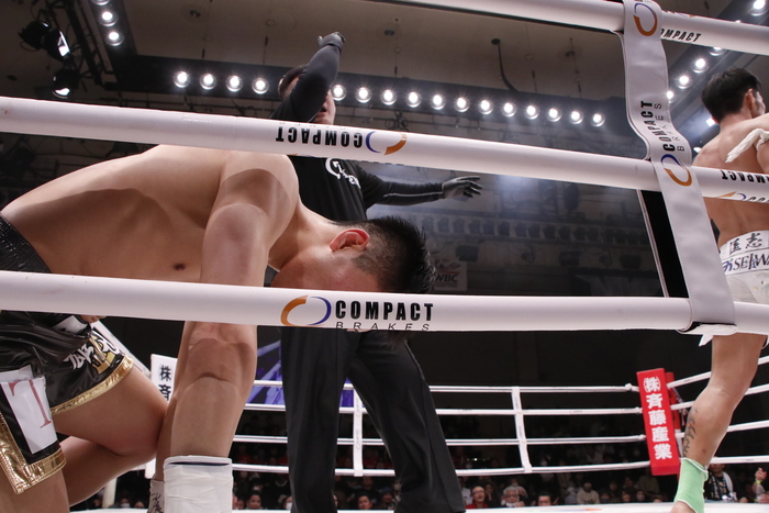 3Rになると匡志は右クロスを多用。雄也が右ストレートで逆転を狙うところに合わせに来たか。圧に下がって雄也がコーナーに詰まったところで、匡志が右ストレートで飛び込んでダウンを奪う。何とか立ち上がった雄也だが、再び匡志が右ストレートを打ち抜くとダウン。ここでレフェリーがストップした。