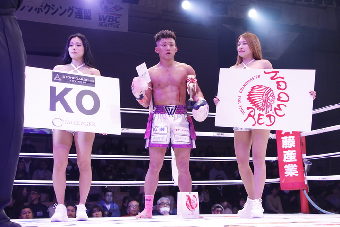 「愛知県から来た豪です。武田幸三さん、今年一発目、また僕のことを使ってくれてありがとうございます。昨年2月、匠選手との試合が組まれたんですが僕の右腕骨折で試合が流れてしまいました。それを1年越しに同じ会場で同じ相手を用意してくださりありがとうございます。西のNJKFでスーパーフライ級のタイトルマッチを行うんですけど、僕もそのベルトを狙っています。その敗者でいいんですけど僕を次期挑戦者に選んでいただきたいです」と、挑戦者決定戦をアピールした。