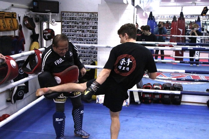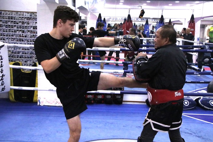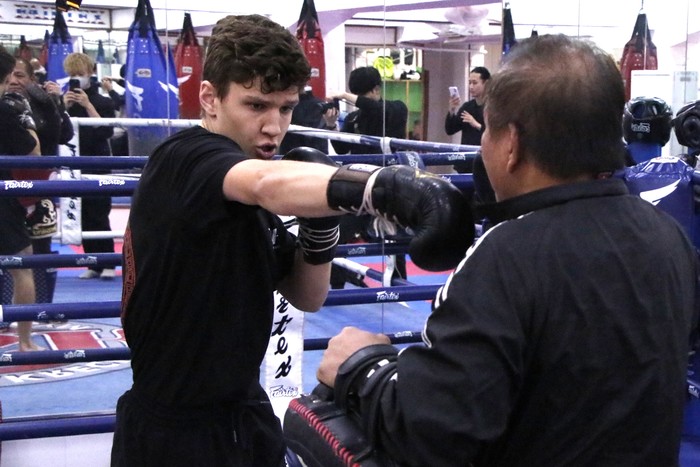 「4~5週間前にタイでムエタイの試合をして、その前後もタイでずっとトレーニングをしていた」と、タイのウィラサクレックジムで練習を積んできたという。以前に来日して日本のウィラサクレックジムで練習していた時期もあったと言い、「1年前にタイでウィラサクレックジムの選手と出会い、日本でトレーニングしたいと思ったんだ。ウィラサクレックジムは世界でも有名だし、ここなら日本のスタイルとムエタイスタイルを融合させて成長できると思ったんだよ」とその理由を話す。今回の公開練習もウィラサクレックジムで行われた。