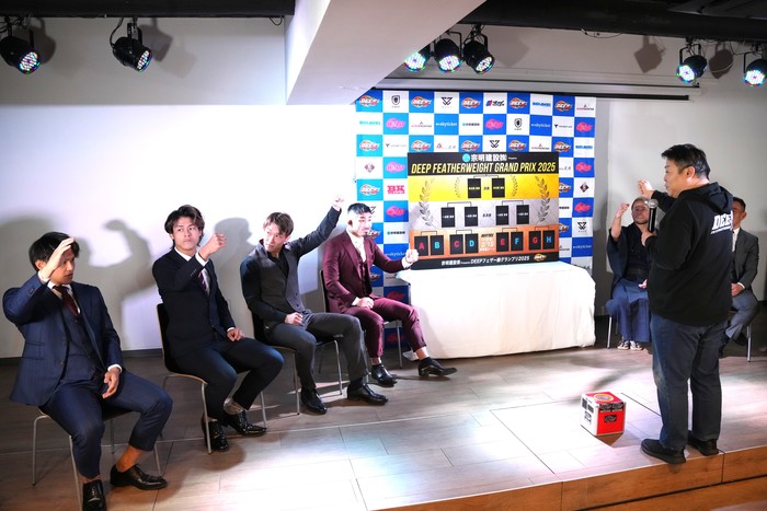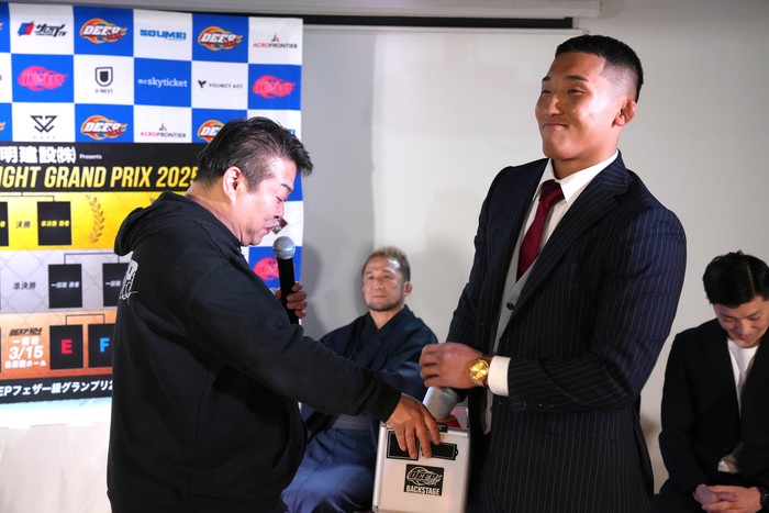 2025年3月15日(土)東京・後楽園ホールで開催される『宗明建設 Presents DEEPフェザー級GP2025一回戦』の対戦カードが下記の通り決定した。GPは65.8kg+300gの66.3kgリミットとなり、5ジャッジにより判定され、GP優勝者にはベルトも渡される(※現フェザー級王者は青井人)。