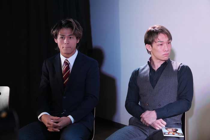 次に2番のボールを引いた奥山がGP第2試合の赤コーナーを選択。3番のボールの海飛は、6枠空いた中から、奥山の隣を選択。ストライカー対決が決定した。