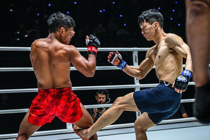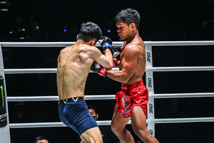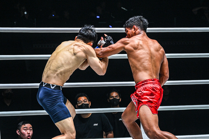 左フック、左アッパー、さらに左ヒザを効かせてミンジョンを崩すと、亀のミンジョンにヒザ! 立ち上がりを連打し、レフェリーが間に入った。ブーミナアンはONE6勝1敗。ミンジョンはONE5勝2敗に。