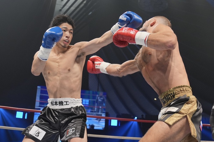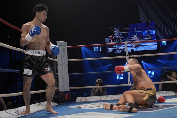1R、近藤は左へ回り込んでいくアキモフの軌道を防ぐようにして動き、アキモフがラッシュをかけてくるとコーナーを背にして右ストレートのカウンター一閃、ダウンを奪う。さらに右ストレートでダウンを追加すると、最後は右ストレートからの左フックでKO勝ち。世界トーナメント準優勝をKOするという金星となった。