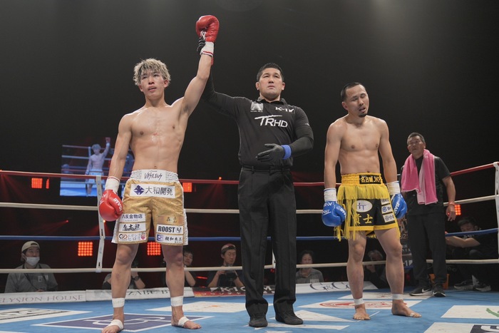 判定は3-0で寺田の勝利、初防衛に成功した。「1年半前に新美選手に初めて負けて、そこから悔しくて応援してくれる人が減ったりとか絶対に負けたくないと思って。そこから2年間しっかり練習して決ました。やってきたことは間違っていなかったので上を目指していきます。それと武尊さん、武尊さんのおかげで今の僕があるし、3月はみんなで武尊さんを応援しましょう」と語った。