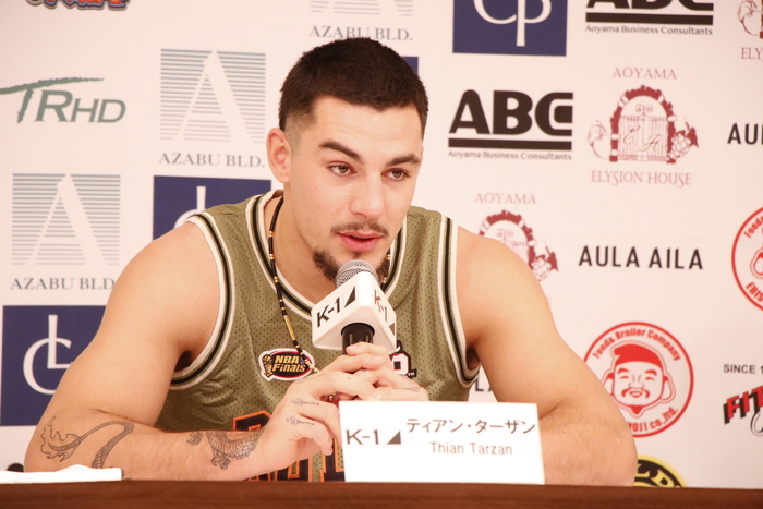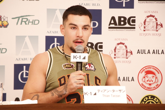 第16試合のK-1クルーザー級3分3R延長1Rで、カルロス・ブディオ(ブラジル/ブラジリアンタイ)を1R2分31秒、KOしたティアン・ターザン(オランダ/Luc Verheije Fight Club)が出席。前夜の試合を振り返った。