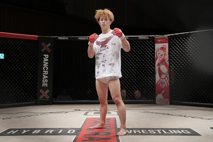みたび送り手を掴むとパウンド。亀になる藤野に右のパウンド連打! 仰向けになるも背中を着かされる藤野はやはりラバード、ニンジャチョーク狙い。インサイドガードの柴山は細かいボディ打ち連打でホーン。ドミネートされた藤野はすぐには立ち上がれずダメージが大きい。