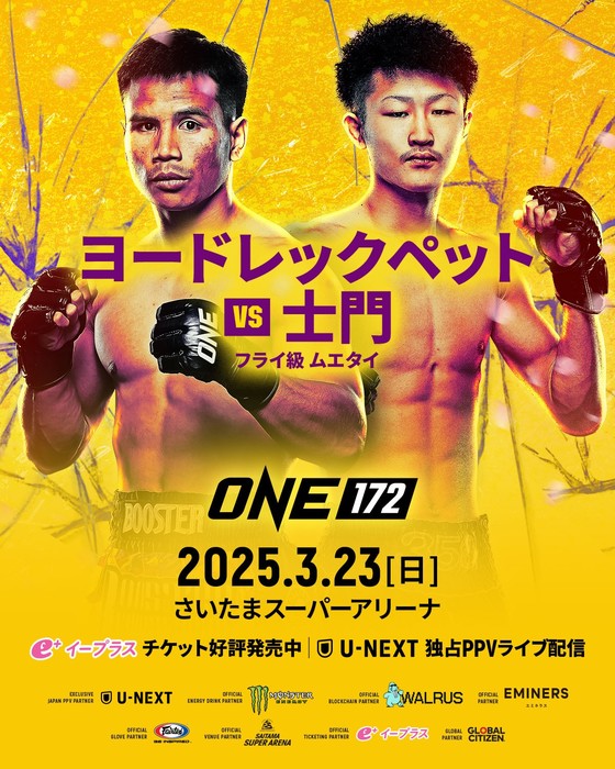 2025年3月23日(日)さいたまスーパーアリーナ『ONE 172: TAKERU vs. RODTANG』(U-NEXT配信)の追加対戦カードが、2月12日(水)、U-NEXTの公式YouTubeチャンネルの番組「格闘BuZZ NEWS」にて発表された。