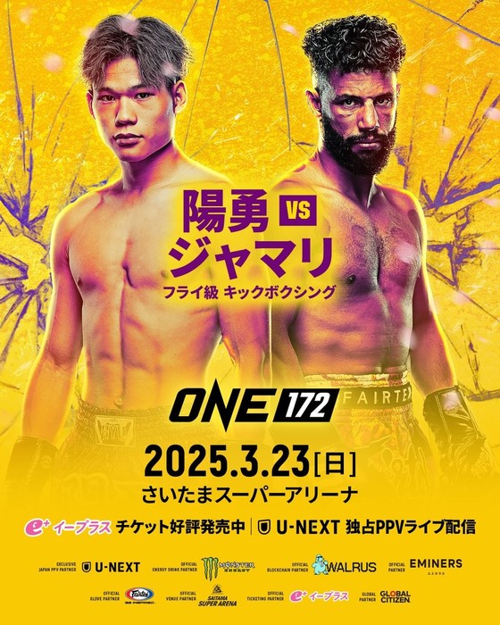2025年3月23日(日)さいたまスーパーアリーナ『ONE 172: TAKERU vs. RODTANG』(U-NEXT配信)の追加対戦カードが、2月12日(水)、U-NEXTの公式YouTubeチャンネルの番組「格闘BuZZ NEWS」にて発表された。