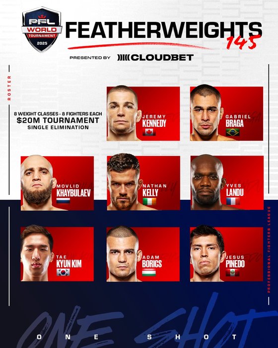 フェザー級では、Bellator王者のパトリシオ・ピットブル(ブラジル)がPFLとの契約を解除し、フリーエージェントとなっており不参加。また、PFL2024優勝のティムール・ヒズリエフ(ロシア)もトーナメントには名前が入っておらず、優勝者とどのようにからむか。