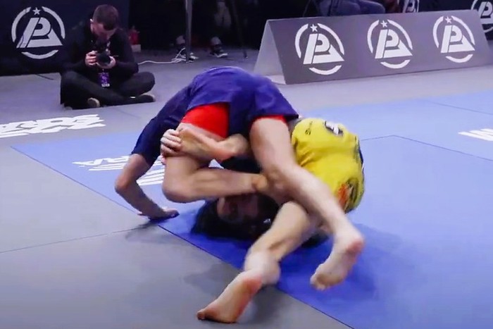 そのディテールについて、本誌が高橋に聞くと、「あのとき自分は、股の間にあるハーフバタフライで相手の体を浮かしており、逆の足を相手の足の外側に出そうとしています。これは“インサイドサンカク”──日本では“サドルロック”とよく呼ぶ入り方で、この動きに相手を反応させ、彼がサドルを組まれないように右足を引いたから、自分は彼の左足を深く捕える事ができたわけです」と説明した。