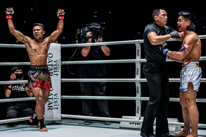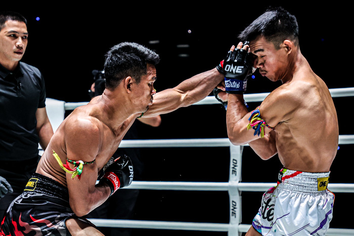2Rが始まった直後、チャートムンコンが右ストレートを打ち、クンポンノーイがダッキングでかわしての左フック一閃。離れようとしたチャートムンコンから強烈なダウンを奪い、レフェリーが即ストップした。
