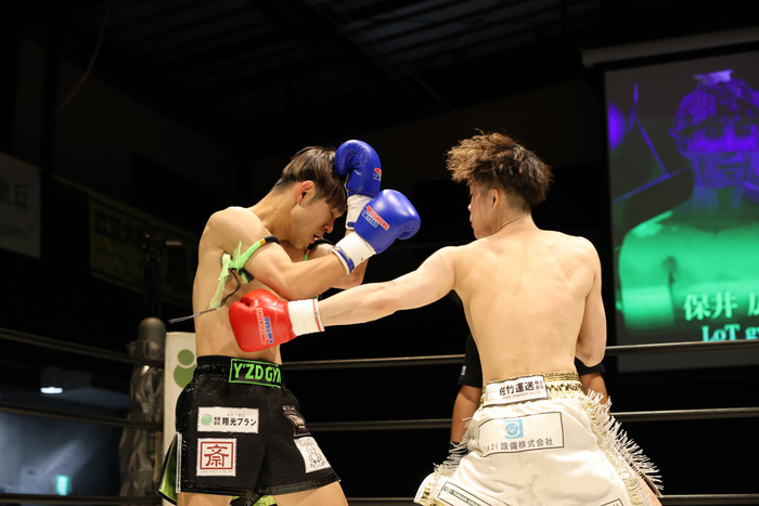 このチャンスを逃す手はない。3R、保井は粘ろうとする弘樹に左右のパンチの連打やカーフで追い打ちをかける。最後はテンカオで押し切り、試合終了のゴングを聞いた。