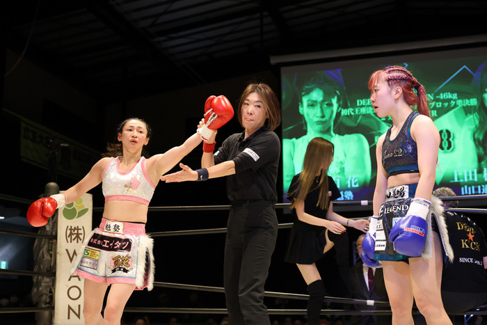 試合後、次戦でキャリア50戦目を迎える百花は「女子で8人のトーナメントを組むということは(キック界にとって)大きいこと。初戦は圧勝で勝ちたかったけど、(そうはならなかったので)帰ったらみんなに怒られると思う。しっかりと練習し直して絶対ベルトを獲る」と締めくくった。