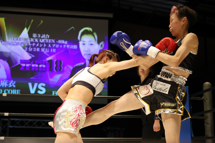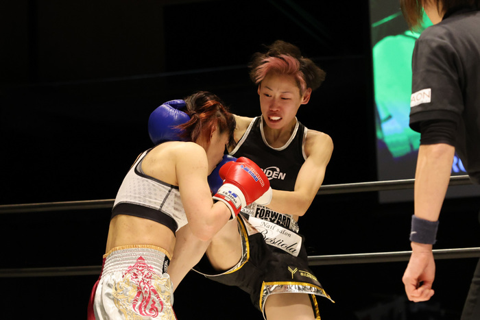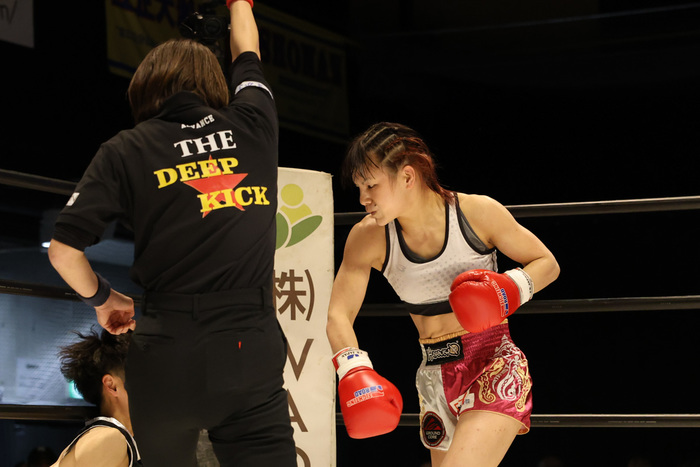 ここ数年ずっと白星から見離されている選手vsプロデビュー戦。ややもするとさほど注目されない一戦になりそうだったが、想像を遥かに凌ぐ熱戦となった。理由はひとつ。試合の冠として『DEEP☆KICK QUEEN-46㎏初代王座決定トーナメント』がついていたからだろう。