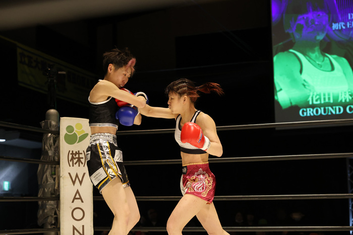 2Rになっても、花田は攻撃の手を休めず右フックをクリーンヒットさせるや、ワンツーで先制のダウンを奪った。林は左のテンカオで必死の反撃を試みるが、花田の勢いは止まらない。3Rには右ストレートを乱れ打ち。林の追撃を断った。判定はジャッジ3名とも30-27で花田。