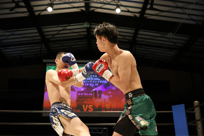 判定は1-0(健真)で勝負は延長戦へ。ここまでも健真は左フック、あるいは右のテンカオ+左ストレートを決めるなど、試合を優勢に進め、3-0の判定勝ちを収めた。