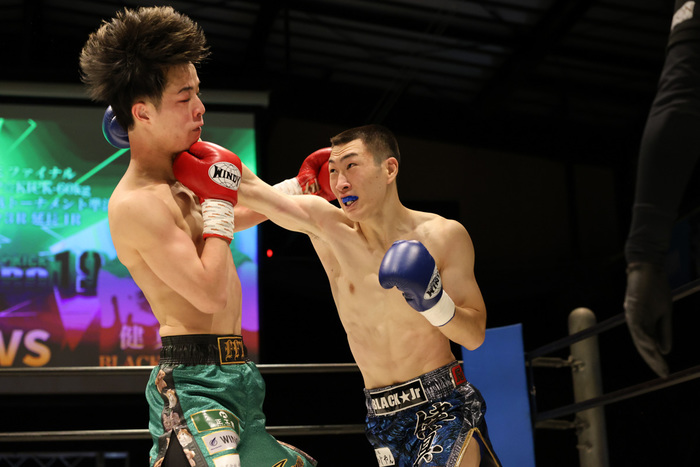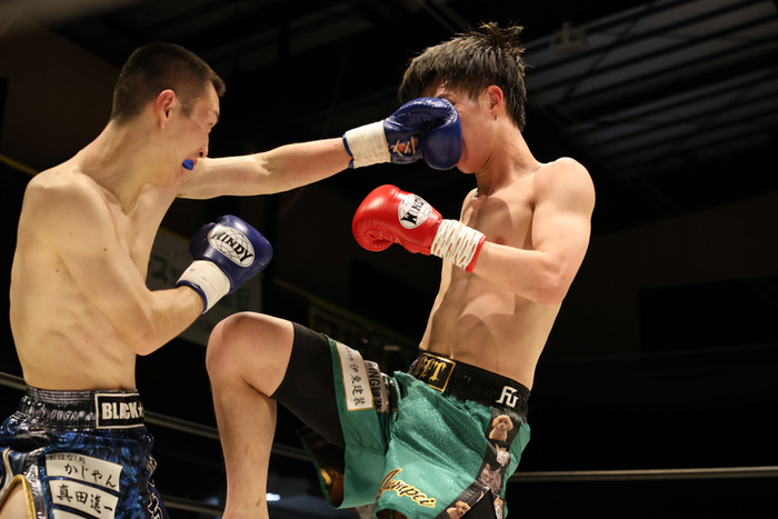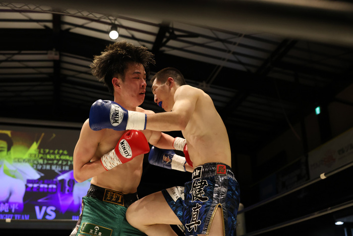 2Rになっても、津留の攻勢は続き、右フックで健真がバランスを崩す場面も。しかしながら3R中盤以降、スタミナに自信を持つ健真は猛然と反撃を開始。ワンツーやハイで攻勢に出る。