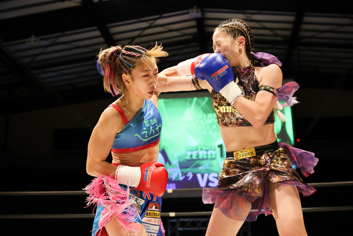 ラウンド終了間際、桃花は左ローでダウンを奪うも、インターバル中にミスジャッジと判断され、スリップダウンと訂正された。それでもオープンスコアは三者とも20-19で桃花。3Rになっても、桃花の手は止まらず、ワンツーやストレートで追い込んでいく。終盤になると、ボディフックも駆使して山﨑を追い込んだ。判定は三者とも桃花を支持。キャリアだけをみれば、まだ新人ながら開幕戦が終わった時点で桃花は優勝候補に躍り出たといっていいのではないか。