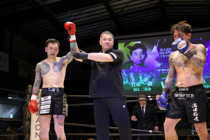 3R、溝口は組み付きで減点1を課せられ、竹市のヒザ蹴りでフラつくも、残り30秒になると、どこにスタミナが残っているのか、果敢に打ち合った。判定は三者とも30-26で竹市を支持したが、溝口のタフネスぶりも光った一戦だった。