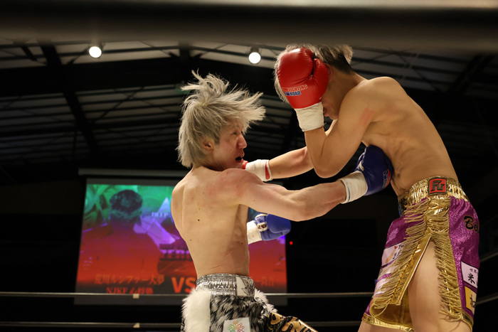 しかし、九州からやってきたハスキーの根性はホンモノ。顔色ひとつ変えず右ストレートをヒットさせ、ルシファーがよろめく場面も。2R終了した時点でのオープンスコアはふたりが19-19、20-20とイーブンで、残るひとりが20-19でルシファーを支持するという僅差だった。
