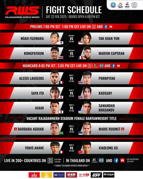 2025年2月22日(土)タイ・ラジャダムナンスタジアム『RWS』(U-NEXT配信)に、日本人3選手の出場が発表された。