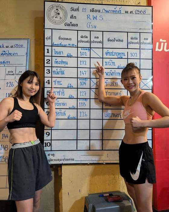 日本女子ムエタイを代表する藤原(左)と伊藤が揃って聖地ラジャダムナンに出撃(C)伊藤紗弥