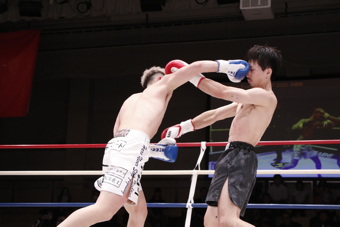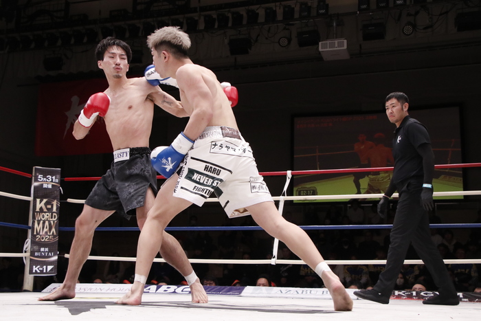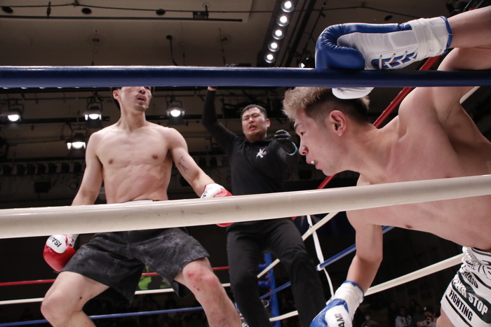 1R、距離を探り合う両者。古宮はボディへのワンツー、西京は左インローと前蹴り。古宮が飛び込んでくるとワンツーを合わせていく西京。古宮の左ミドルに左フックを合わせにいくが空振り。西京は右カーフから右ハイ。両者とも相手の攻撃をステップでかわしていく展開が続く。右をフェイントにして西京はいきなりの左フックで最初のダウンを奪うと、立ち上がった古宮にワンツー・スリーでの左フック。古宮がダウンし、西京のKO勝ちとなった。