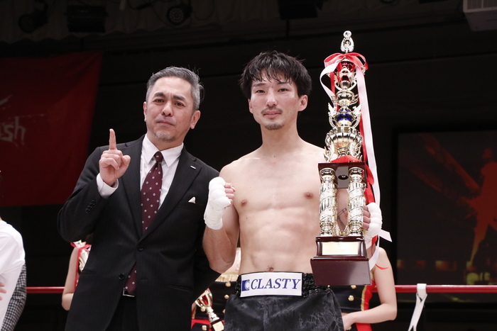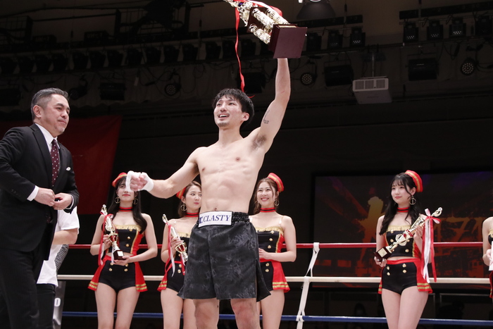 優勝トロフィーと賞金を手にした西京はマイクを持ち「ありがとうございました。むちゃむちゃ疲れましたね。1回戦で足を痛めて正直準決勝も決勝もメンタル的にきつかったんですが、何とか気合いで優勝できました。最後はKOでいい感じで締められたと思うので、次はK-1のチャンピオンを目指していくので注目お願いします」と話した。