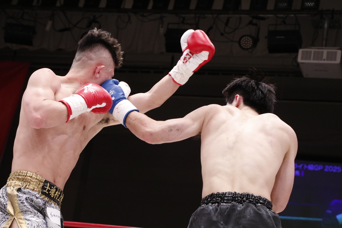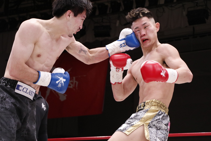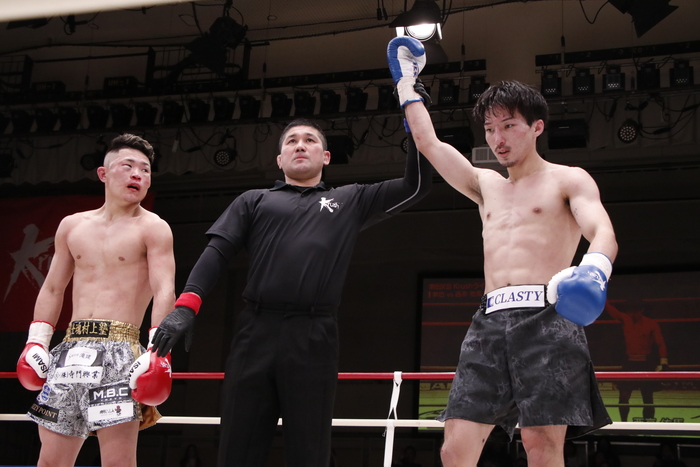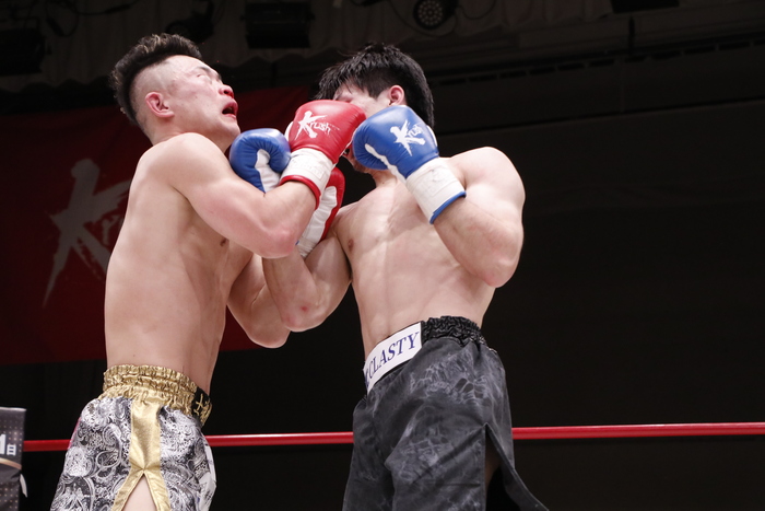 2Rも前へ出ていく昇也だが、そこに西京がパンチを出していく。左右フックにアッパー、昇也はもらう場面が増える。なかなかローを蹴ることが出来ず、左フックで西京のバランスを崩す場面もあったが、西京の手数が優った。