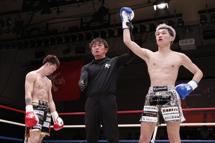 3Rは内田が一気に前へ出て勝負を仕掛けていく。荒々しくパンチを打つ内田に、齊藤はジャブ、右ミドル、右アッパーと攻撃を当てていく。ガムシャラな内田に比べて確実に当てていく齊藤が判定3-0で勝利を得た。