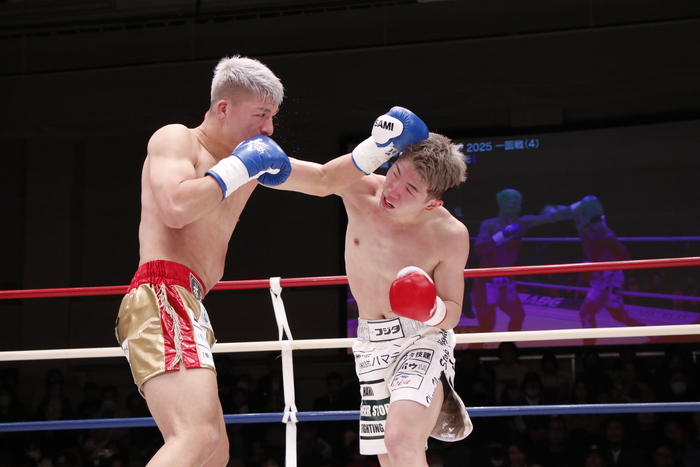 2Rは永澤がペースを上げて打ち合いに行ったが、古宮が左ボディからの左フックでダウンを奪取。しかし、立ち上がった永澤が左右フックとアッパーで逆襲。しばらく古宮を追いまわす展開となったが、息を吹き返した永澤が前蹴りとハイキック、ワンツー、左ボディで優勢に。
