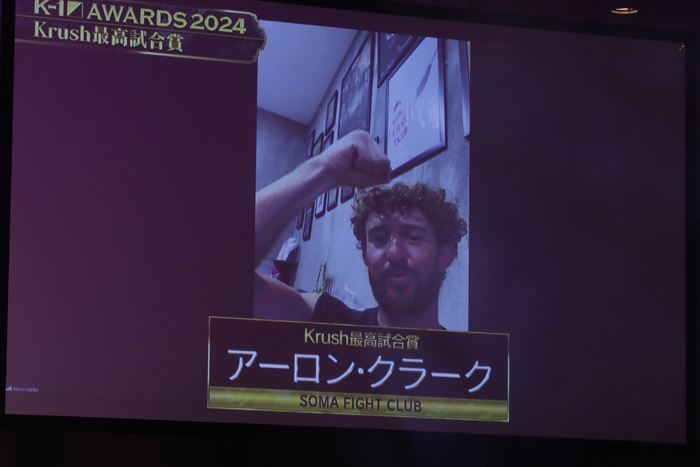 クラーク「Krushという最高の団体の中で賞を取れたのは嬉しいですし、対戦相手がいて初めて取れた賞だと思っています。そんな賞を取ることが出来て嬉しく思っています。また日本に戻って最高の試合を見せられるように今も練習を頑張っています」